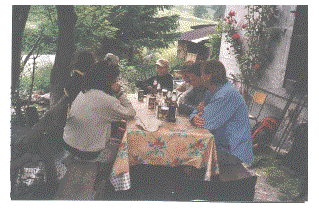 Der Aperitif des Hauses ist Auftakt zum Abendessen. Die Stimmung steigt, nachdem die letzten Kilometer der Etappe schon an den Kraftreserven gezerrt hatten.